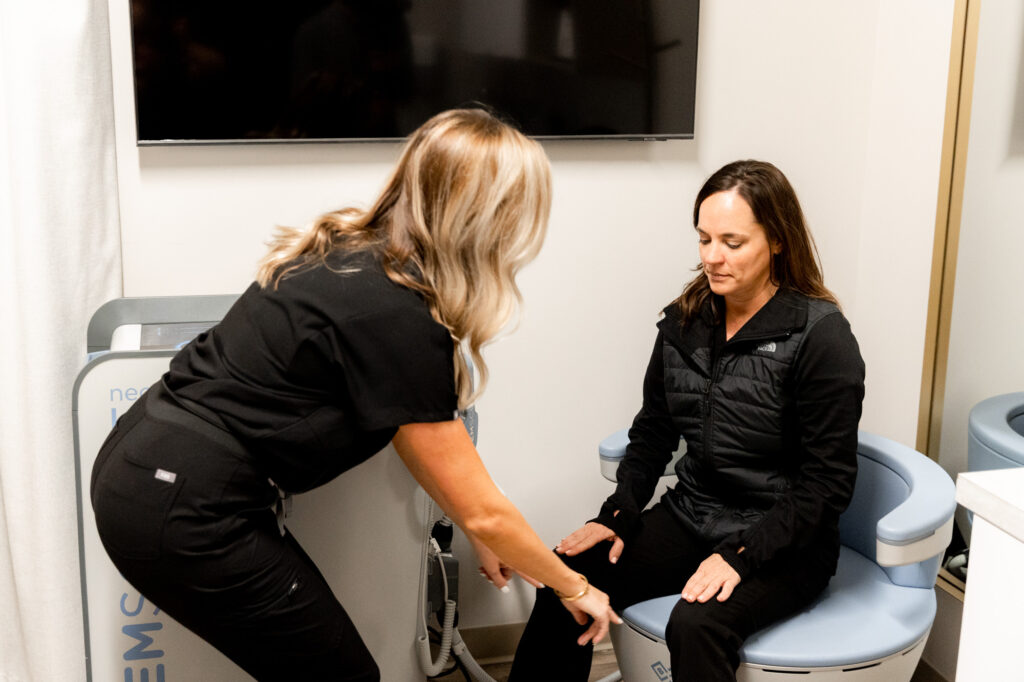 Did you know that the key to combatting urinary incontinence and bladder leakage is not treating the bladder but treating your pelvic floor? Emsella at Renova Total Health Aesthetics is the premier urinary incontinence treatment in Carmel and works by toning and tightening your pelvic floor muscles non-invasively.
